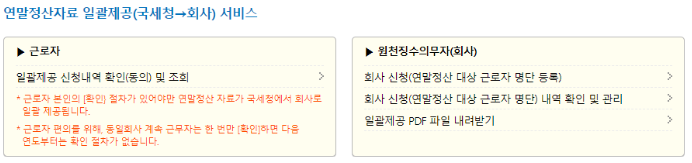 신규 서비스도 2개나 추가가 되었는데, 국세청에서 연말정산 자료를 회사로 직접 제출하는 서비스랍니다.